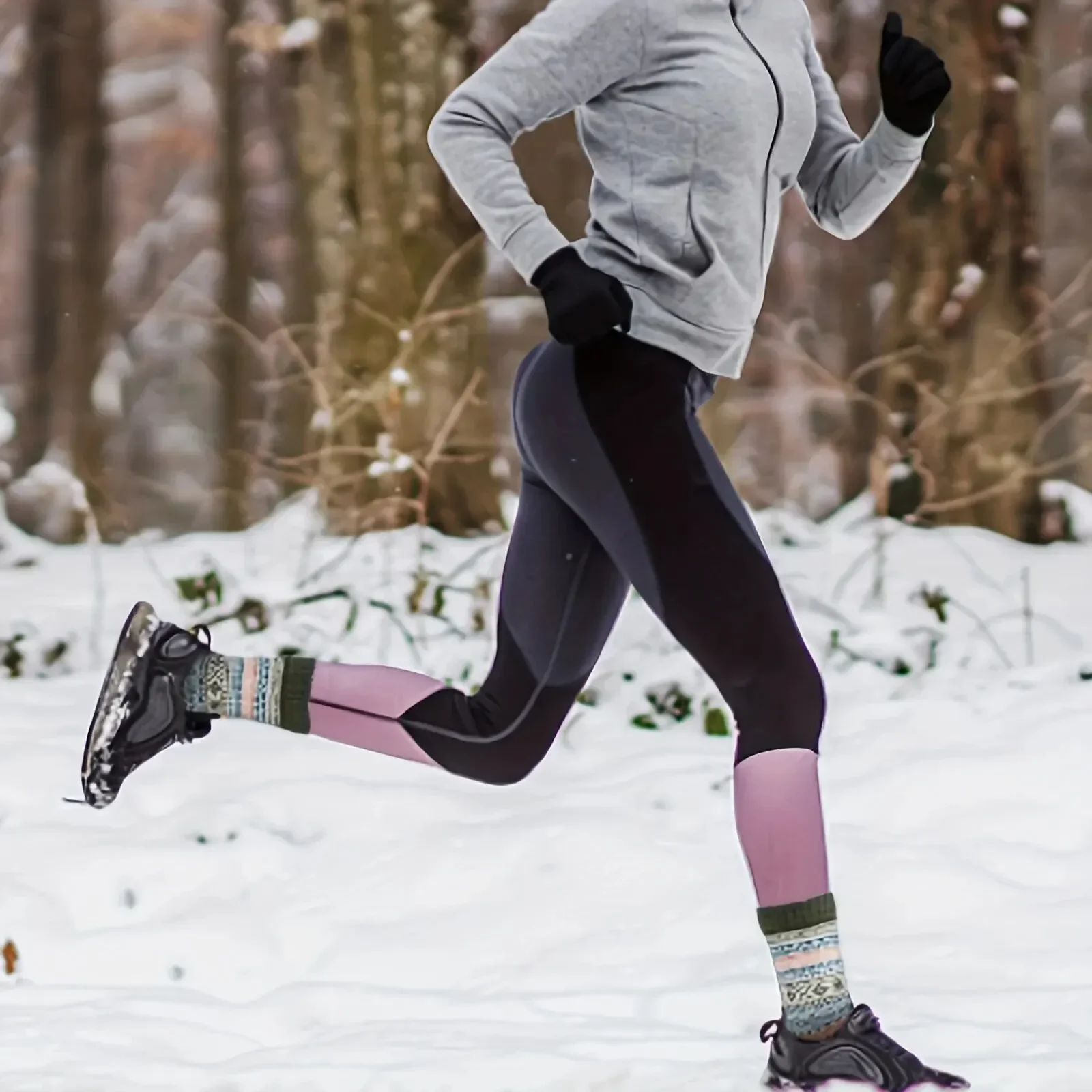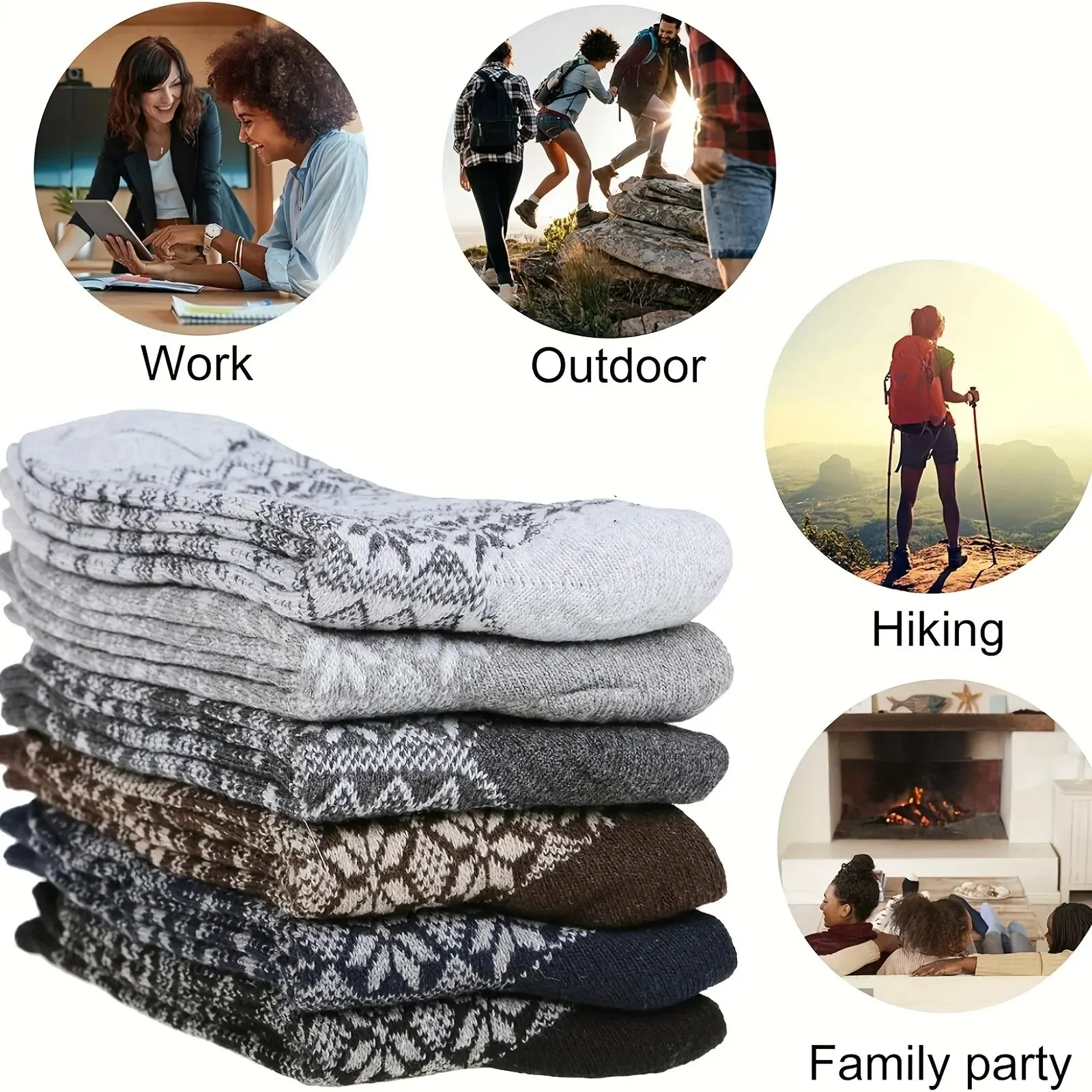 5 Pairs Retro Ethnic Style Winter Socks – Unisex Thick Warm Japanese Knit, Mid-Calf Cozy Stockings for Autumn & Winter